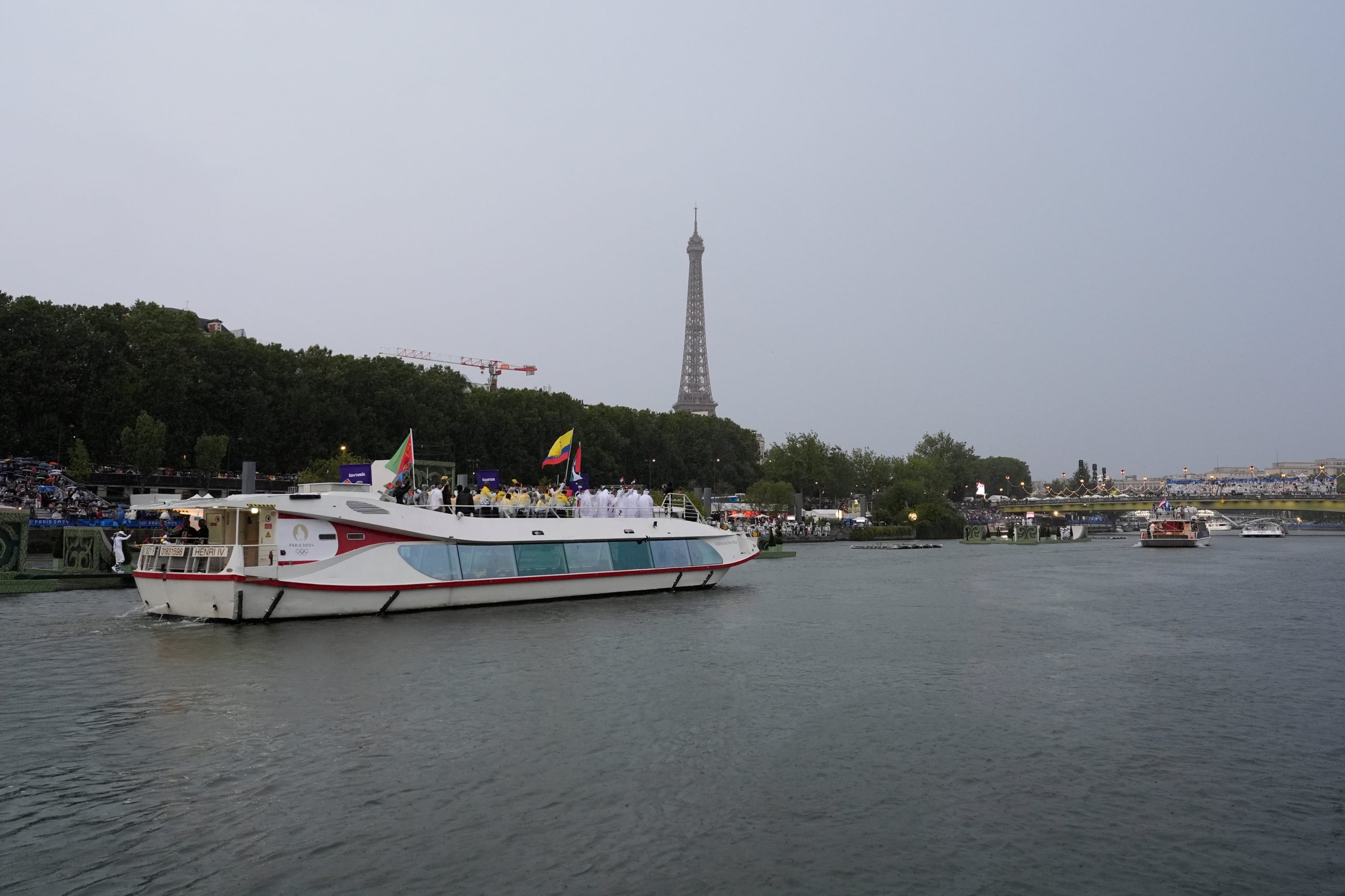 Apesar da chuva, alegria e felicidade ainda enchiam os céus sombrios de Paris. Apresentações musicais, colunas coloridas de fumaça no ar e uma plateia emocionada aplaudiam enquanto cada barco flutuava pela Pont d'Arcole. De todas as janelas ao longo do rio, grupos de pessoas acenavam com entusiasmo para os atletas, que dançavam e comemoravam ao som da música animada.