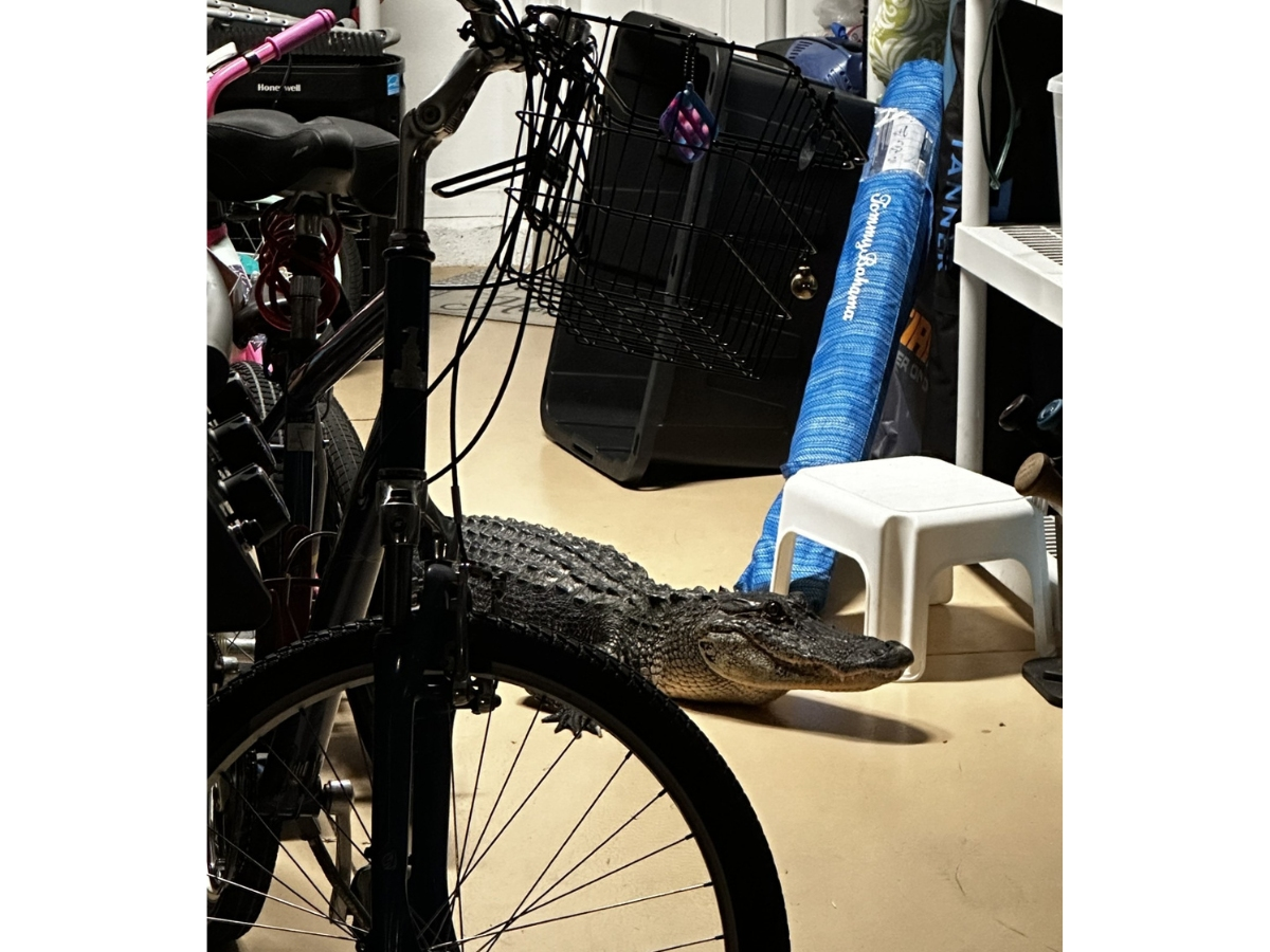 Um morador de North Port ficou surpreso ao encontrar um jacaré de 2,13 metros em sua garagem, disse a polícia.