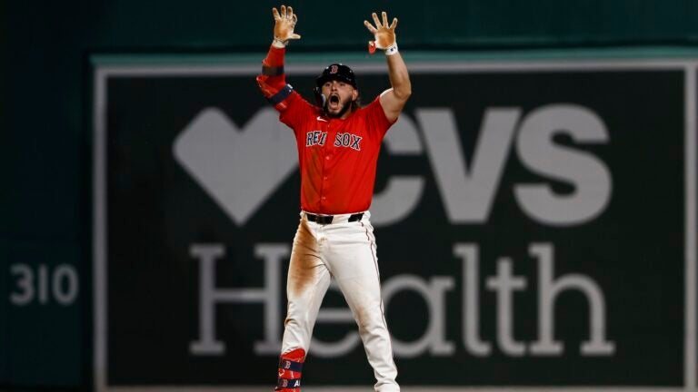 Wilyer Abreu acertou uma rebatida dupla RBI que empatou o jogo na oitava entrada para ajudar o Red Sox a se recuperar contra os Yankees. Winslow Townson/Getty Images