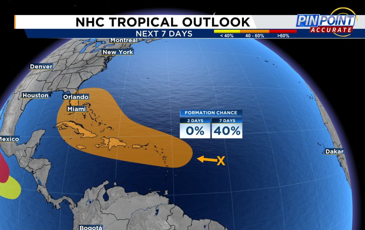 Às 19h de domingo, a onda ainda tinha 40% de chance de se desenvolver em uma formação tropical mais organizada nos próximos sete dias, quando poderia se tornar uma depressão tropical ou até mesmo uma tempestade tropical.