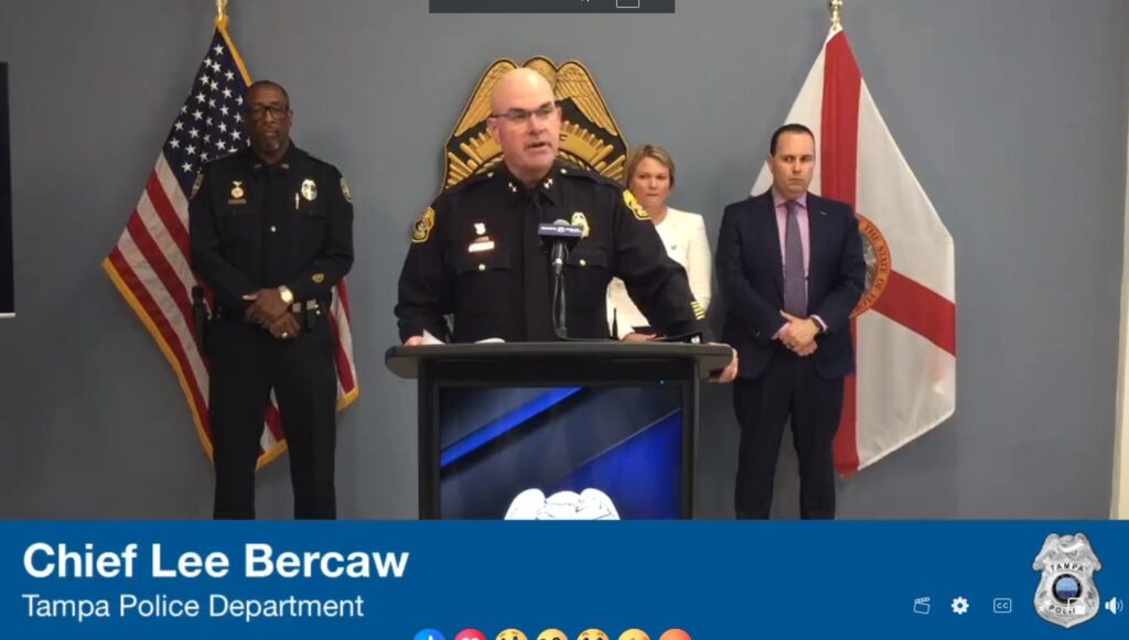 O chefe de polícia de Tampa, Lee Bercaw, anunciou as prisões em uma entrevista coletiva na segunda-feira, acompanhado pelo xerife de Jacksonville, TK Waters.