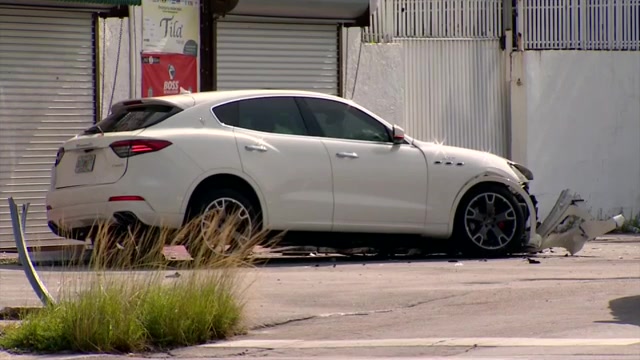 Um Maserati acidentado foi abandonado perto da Northwest 103rd Street e Seventh Avenue, na tarde de domingo.