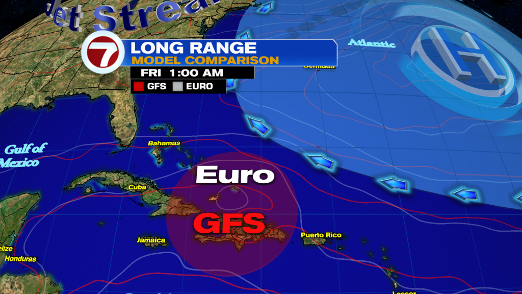 A perturbação continua desorganizada. Espera-se que produza tempo tempestuoso em torno das Pequenas Antilhas no meio da semana. Parece que uma baixa “tenta” fechar perto da República Dominicana e Haiti ou Bahamas entre quinta e sexta-feira.