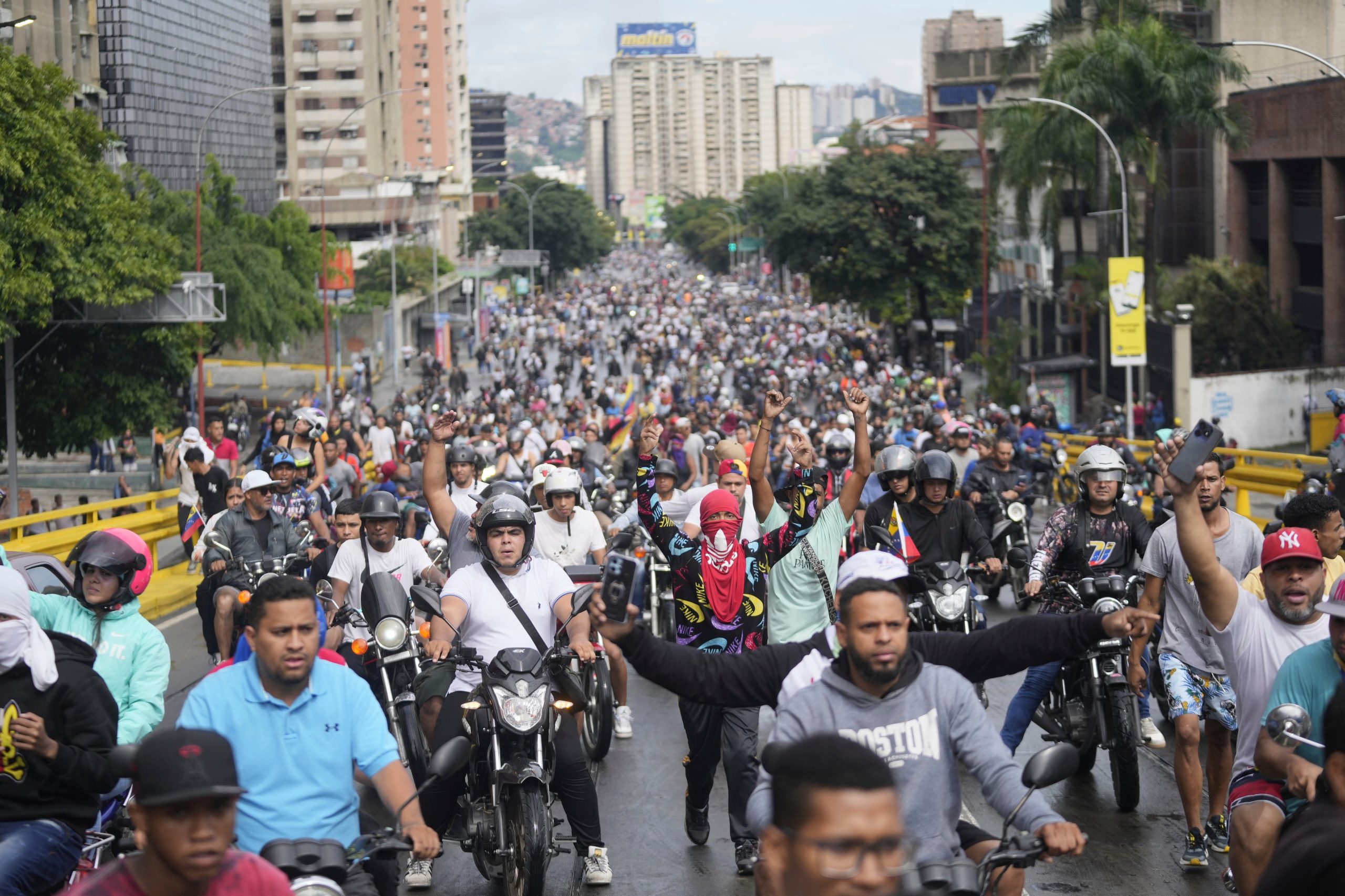 Nas ruas perto do maior bairro de baixa renda de Caracas, Petare, manifestantes gritavam contra o governo, e alguns, usando máscaras, arrancavam cartazes de campanha de Maduro pendurados em postes de luz. Forças de segurança fortemente armadas estavam a apenas alguns quarteirões do protesto.