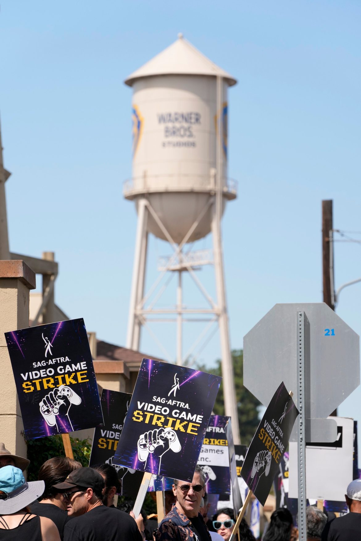 LOS ANGELES – Mais de 300 artistas de videogame e atores de Hollywood fizeram piquete em frente ao prédio da Warner Bros. Studios na quinta-feira para protestar contra o que eles chamam uma relutância das principais empresas de jogos em proteger igualmente os dubladores sindicalizados e os trabalhadores de captura de movimentos contra o uso não regulamentado de inteligência artificial.