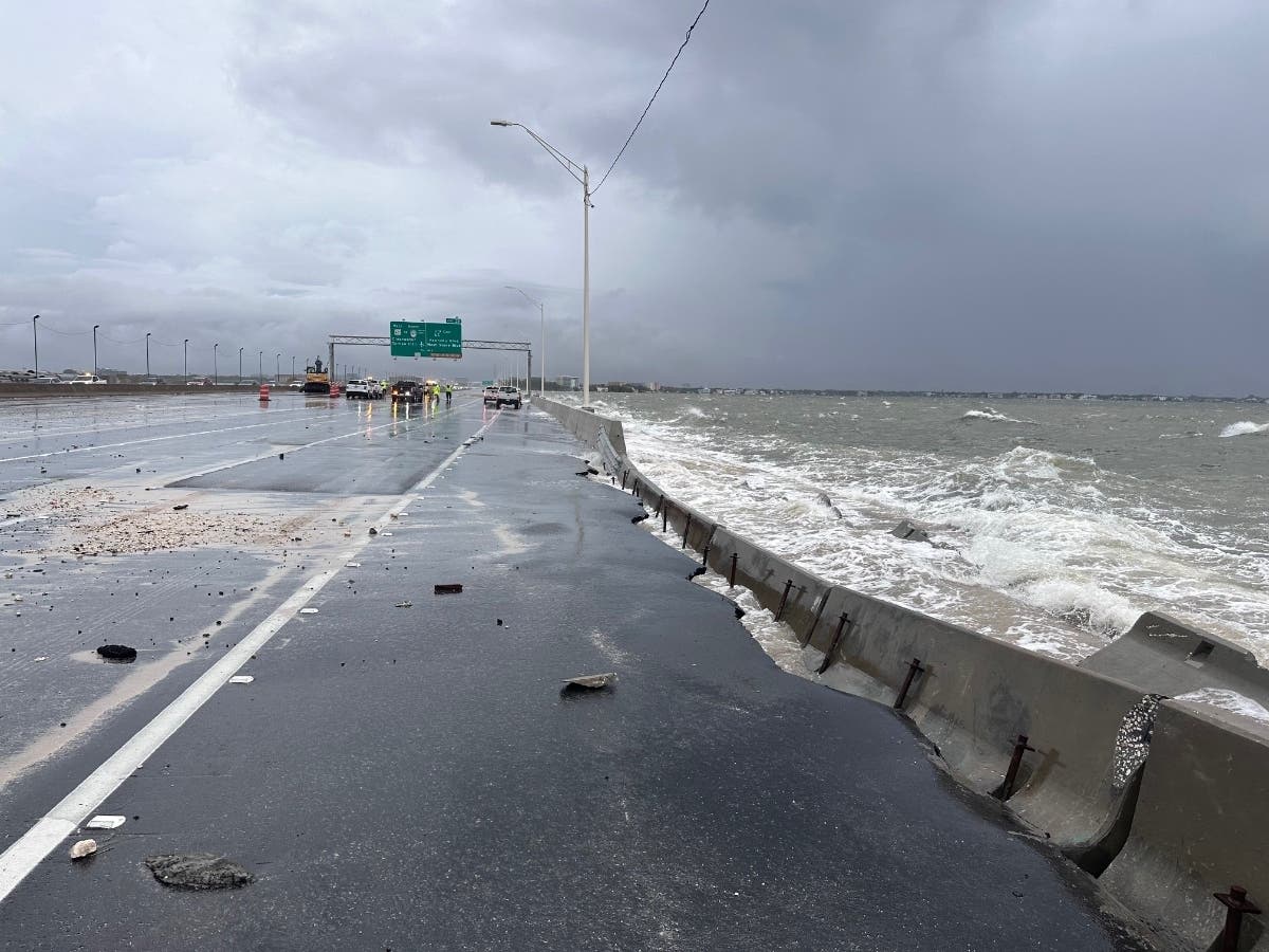 As faixas no sentido norte da Ponte Howard Frankland foram fechadas na manhã de segunda-feira devido às fortes ondas e detritos que atingiram a rodovia e destruíram partes do acostamento e da estrada no lado de Hillsborough, de acordo com um comunicado à imprensa da Patrulha Rodoviária da Flórida.