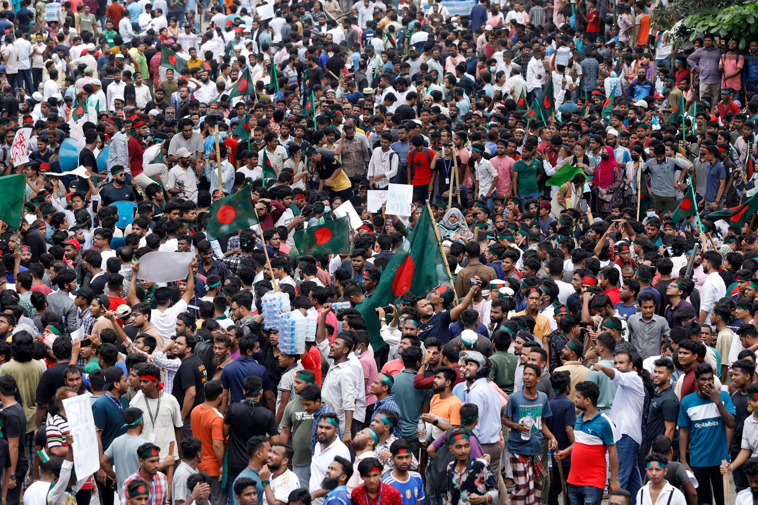 As manifestações começaram com estudantes que tentavam acabar com o sistema de cotas para empregos públicos, mas os confrontos com a polícia e ativistas pró-governo transformaram-se em violência que deixou mais de 200 mortos. Isso levou os líderes da oposição a protestarem e pedirem a renúncia da primeira-ministra Sheikh Hasina, ampliando os protestos por todo o país.
