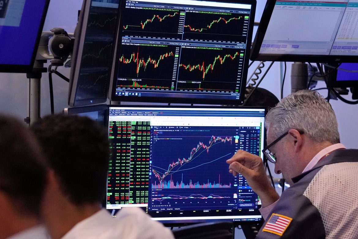 Trump escreveu mais de uma dúzia de posts em sua rede social na segunda-feira sobre os mercados e a política econômica dos EUA, junto com um vídeo da campanha republicana que busca atrelar Harris às manchetes do mercado e ao presidente Biden, que encerrou sua tentativa de reeleição no mês passado. O vídeo mostra Harris dizendo, “Bidenomics está funcionando” justaposto a comentaristas de notícias descrevendo o declínio do mercado de ações.