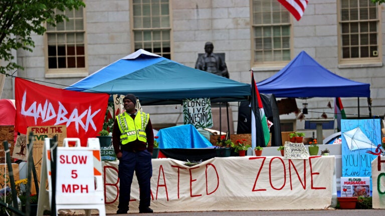 A cidade de tendas na Universidade de Harvard em maio. (David L Ryan/Equipe Globe)