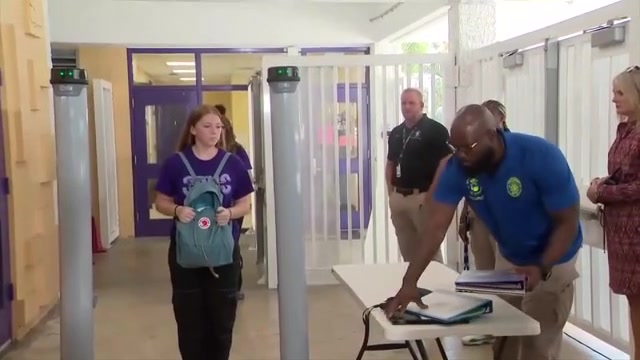 Autoridades das Escolas Públicas do Condado de Broward realizaram na quarta-feira uma demonstração de seus novos detectores de metais na South Plantation High School.