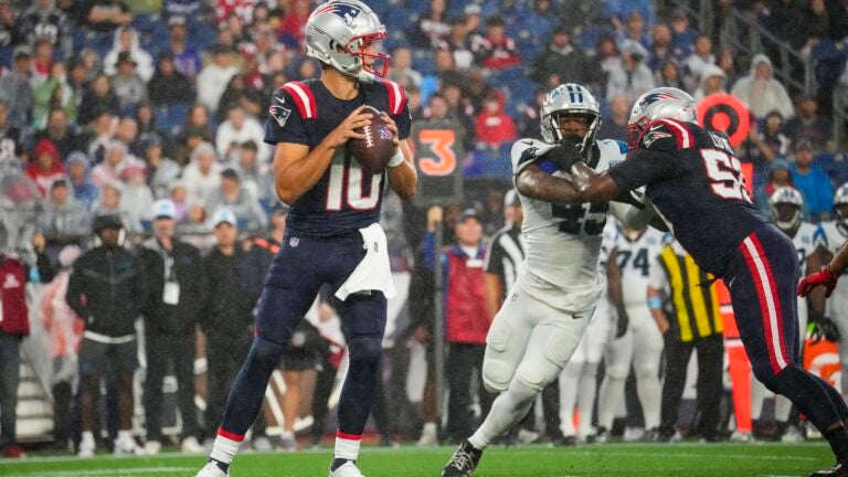 Estreia de Drake Maye na pré-temporada da NFL durou apenas uma série na quinta-feira à noite contra os Panthers.