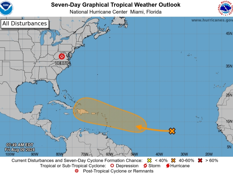 “Qualquer desenvolvimento da onda deve ocorrer lentamente durante os próximos dias, enquanto ela se move para o oeste através do Atlântico tropical central”, de acordo com o NHC. “Depois disso, espera-se que as condições se tornem mais propícias para o desenvolvimento enquanto a onda se move para oeste-noroeste, e uma depressão tropical pode se formar no início da próxima semana, enquanto o sistema se aproxima das Pequenas Antilhas.”