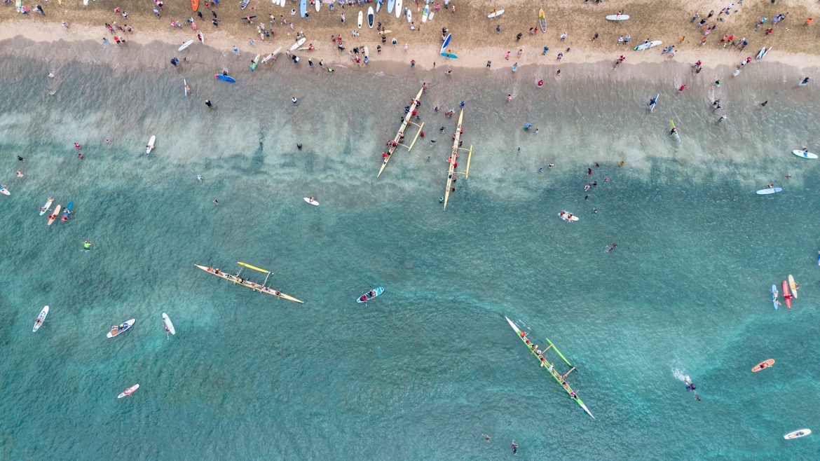 A reunião “paddle out” é um ritual observado no Havaí em homenagem aos entes queridos. Tantos espectadores lotaram um parque de praia para assistir aos surfistas que havia pouco espaço para se movimentar. As pessoas sopravam conchas tanto da costa quanto da água, enquanto outras jogavam pétalas de flores no oceano.
