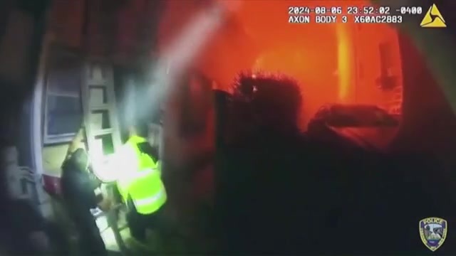 O vídeo da câmera corporal mostrou policiais, bombeiros e paramédicos correndo contra o tempo e usando uma escada para ajudar as pessoas a escaparem pelos fundos da casa.