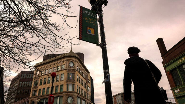 Um pedestre se aproxima do Ferdinand Building (Bruce C. Bolling Municipal Building) na Washington Street na Nubian Square em Roxbury em fevereiro. O preço médio de venda de um condomínio neste bairro de Boston foi de $ 602.889 no segundo trimestre, um aumento de 3,5 por cento em relação ao mesmo período em 2023. O preço por pé quadrado subiu 46,9 por cento para $ 641. Craig F. Walker/Equipe Globe