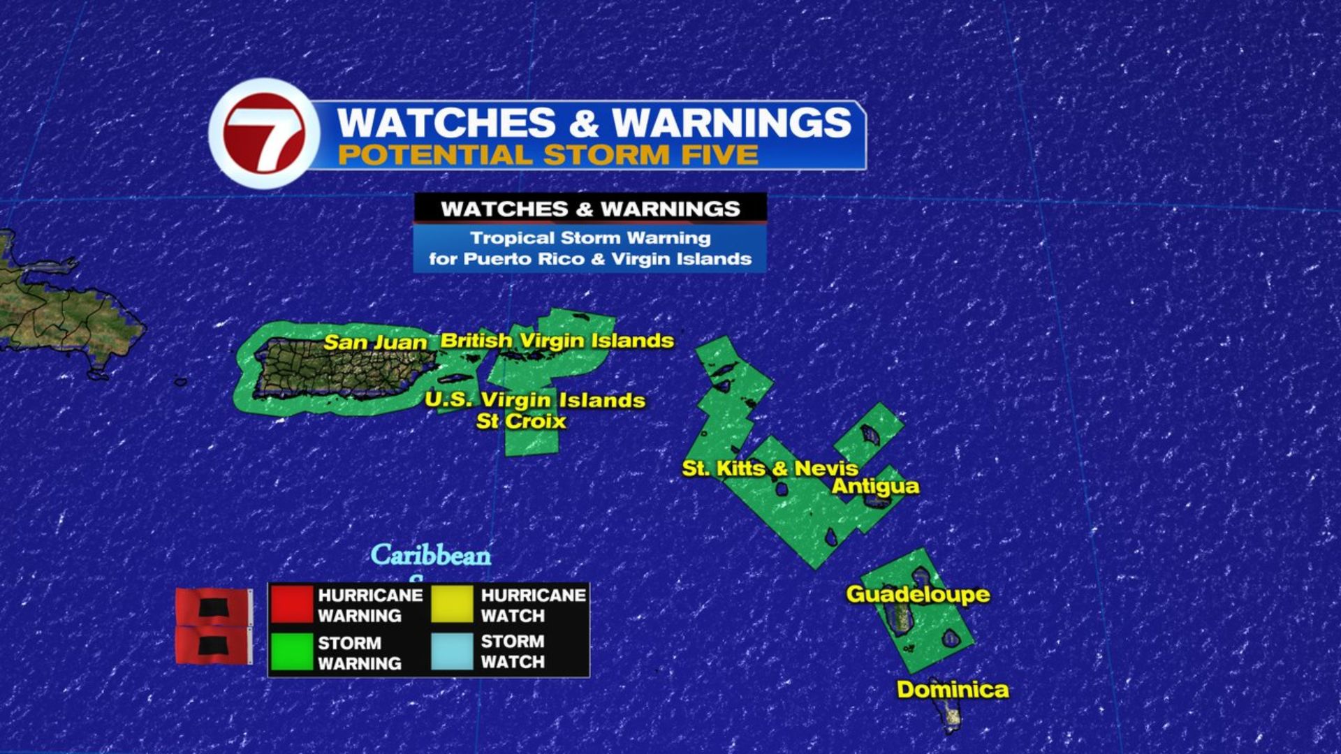 O alerta estava em vigor para Porto Rico, Ilhas Virgens Americanas e Britânicas, Antígua, Barbuda, Anguilla, São Cristóvão e Névis, Montserrat, Guadalupe, São Martinho, São Bartolomeu e São Martinho.