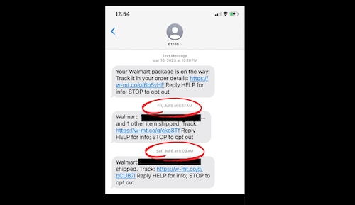 “Nossas notificações de texto automatizadas são projetadas para fornecer atualizações oportunas sobre o status do pedido e da entrega para nossos clientes”, disse uma porta-voz, observando que os clientes optam pelas atualizações. “Os cronogramas de entrega começam às 7h da manhã – o que significa a chegada dos itens. As notificações são enviadas antes de um item chegar, isso é feito para manter os clientes atualizados sobre a chegada do item.”