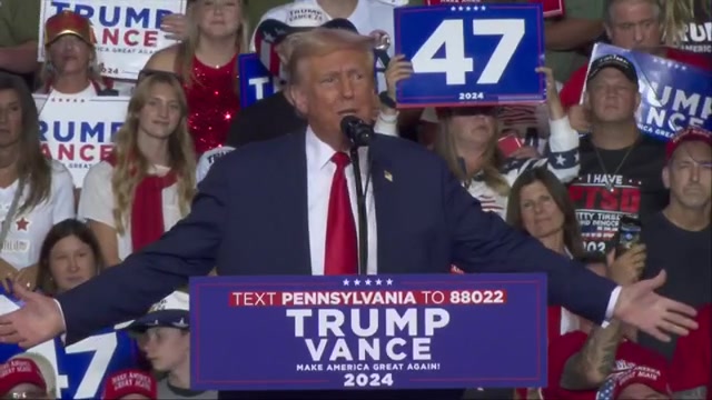 Ele previu a ruína financeira para o país, e para a Pensilvânia em particular, se Harris vencer, citando sua oposição passada ao fracking, um processo de extração de petróleo e gás comumente usado no estado. Sua campanha tentou suavizar sua posição sobre o fracking, dizendo que ela não o proibiria, embora essa fosse sua posição quando ela estava buscando a nomeação presidencial de 2020.