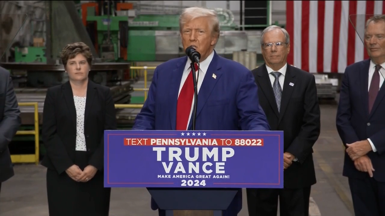 O ex-presidente e indicado do GOP fez um discurso em uma fábrica na Pensilvânia na segunda-feira, enquanto tenta minar a celebração democrata com uma agenda lotada. Ele está realizando eventos diários em estados de campo de batalha vinculados a assuntos onde os republicanos acham que têm vantagem, incluindo economia, crime e segurança, segurança nacional e a fronteira.