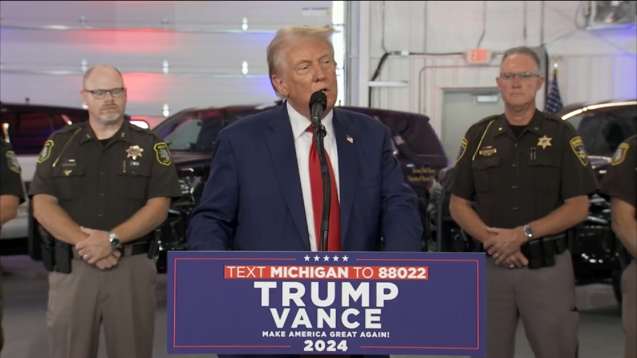 A visita de Trump a Michigan é parte de uma viagem de quatro dias por campos de batalha importantes enquanto os democratas se encontram em Chicago. Ele visitou a Pensilvânia na segunda-feira e tem aparições planejadas na Carolina do Norte e no Arizona no final desta semana.