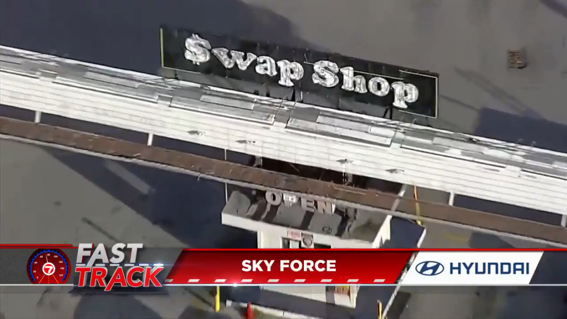 O 7Skyforce pairou sobre a Swap Shop, onde os bombeiros estavam no local e pareciam ter o incêndio sob controle.