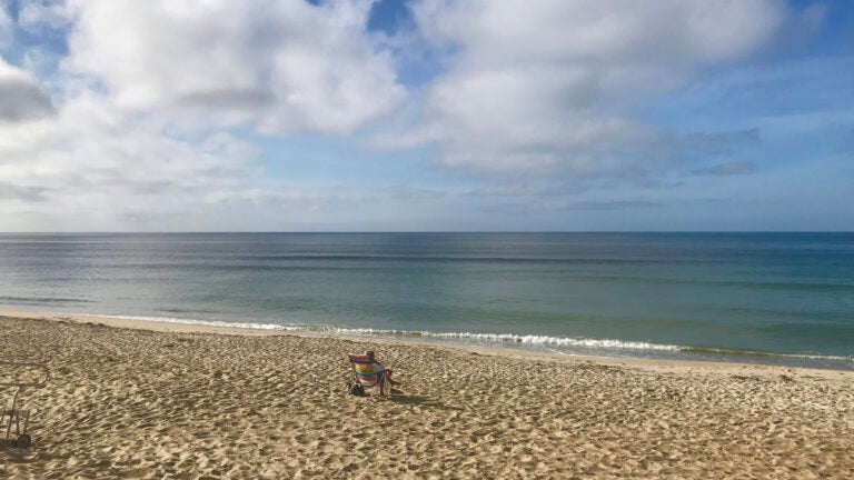 Nantucket, Massachusetts – Um banhista solitário aproveita a solidão da Praia Madaket em um domingo tranquilo antes do Dia do Trabalho em 2018. -Stan Grossfeld/Equipe Globe