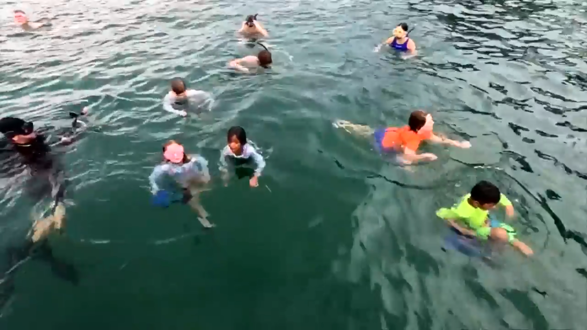 No barco para Wahoo Bay, eles aprendem a identificar os peixes que verão e, quando chegam lá…