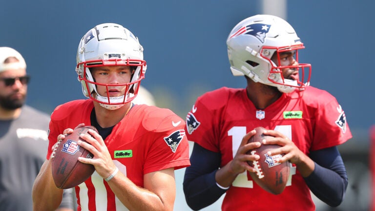 Drake Maye e Jacoby Brissett serão representados na final da pré-temporada no domingo. John Tlumacki/Equipe Globe