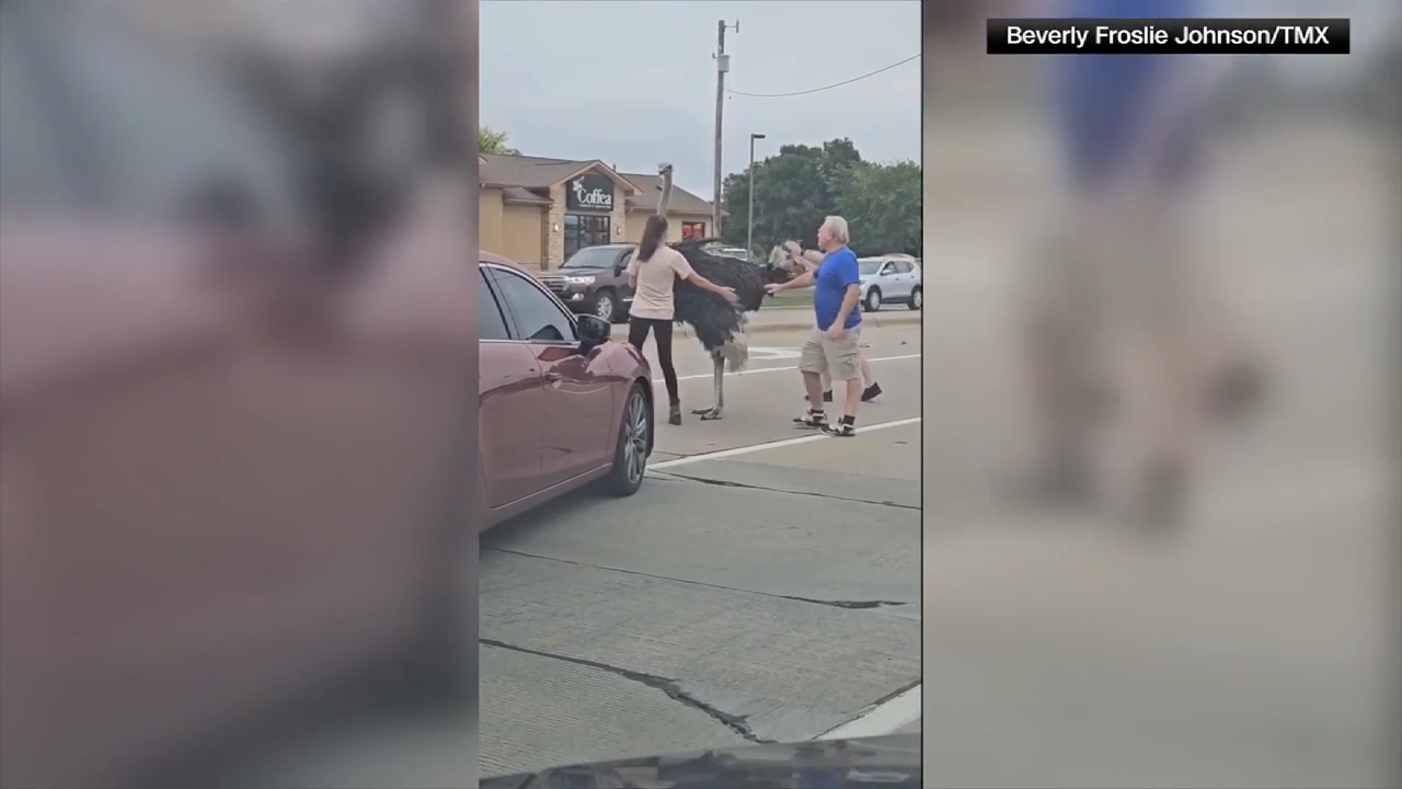 Um porta-voz da polícia disse que o pássaro estava entre vários avestruzes sendo transportados em um trailer de propriedade de um viajante de fora do estado antes de escapar. O dono ajudou a capturar o pássaro e conseguiu colocá-lo de volta no trailer.
