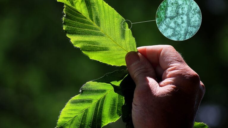 O Departamento de Conservação e Recreação de Massachusetts tem mais detalhes e informações sobre como relatar avistamentos em https://rb.gy/sygy7z (Encurtamos o URL para você.) A doença foliar da faia se manifesta como faixas diagonais verde-escuras nas folhas.