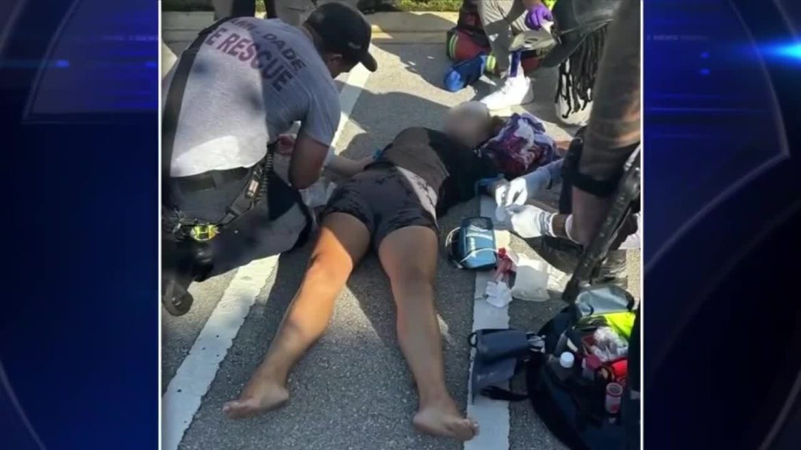 Novas fotos mostram a mãe inconsciente na rua, sangrando na estrada, enquanto as equipes de resgate do Corpo de Bombeiros de Miami-Dade trabalhavam nela.