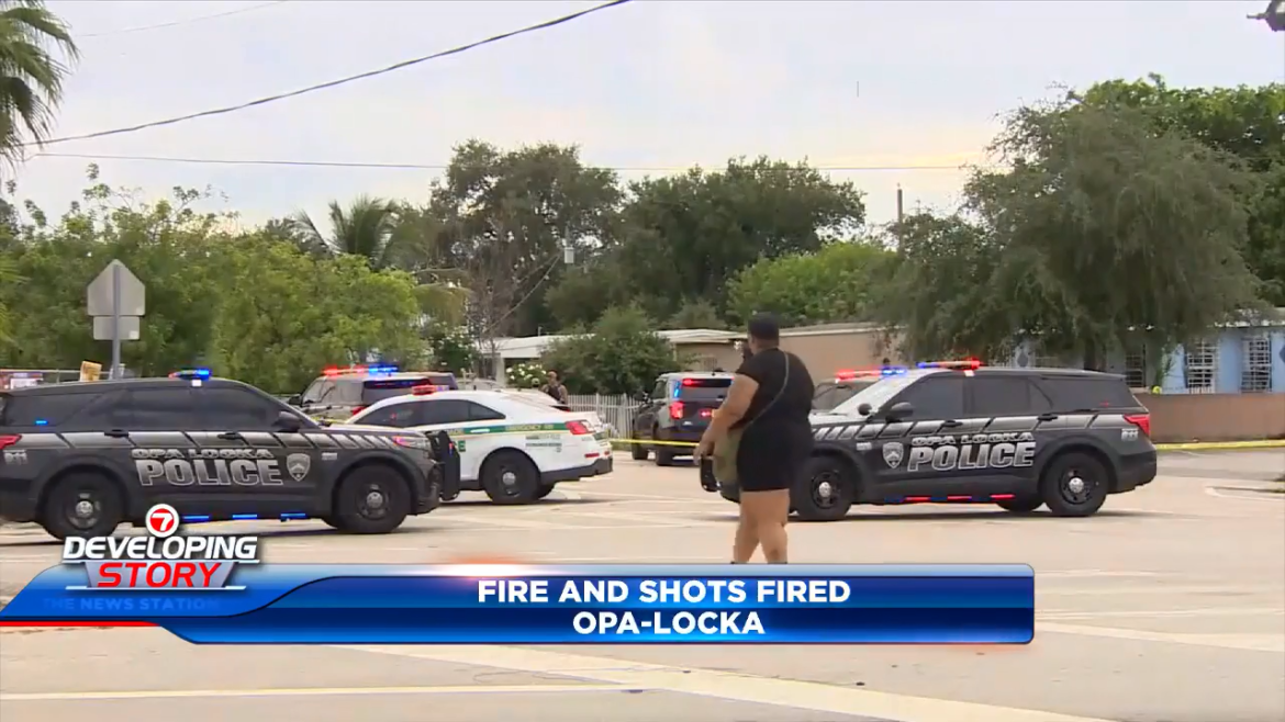 OPA-LOCKA, FL. (WSVN) – Bombeiros que trabalhavam para apagar um incêndio em um apartamento tiveram que se proteger durante um tiroteio duplo em um bairro de Opa-locka, que feriu uma pessoa.