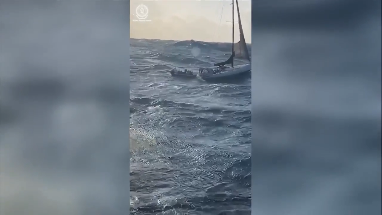 O homem de 60 anos e uma mulher de 48 anos foram resgatados às 7h30 da manhã de seu iate de 19 metros (62 pés), que foi abandonado 300 quilômetros (185 milhas) a leste da costa do estado de Nova Gales do Sul, disse o inspetor-chefe de polícia Anthony Brazzill. A dupla deveria chegar a Sydney a bordo de um barco da polícia na terça-feira à noite.