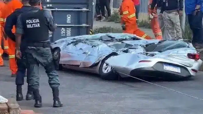 Foi necessário um guindaste para erguer a carreta e retirar o automóvel. Vídeos que circularam nas redes sociais registraram o momento exato da retirada do carro debaixo da carreta.