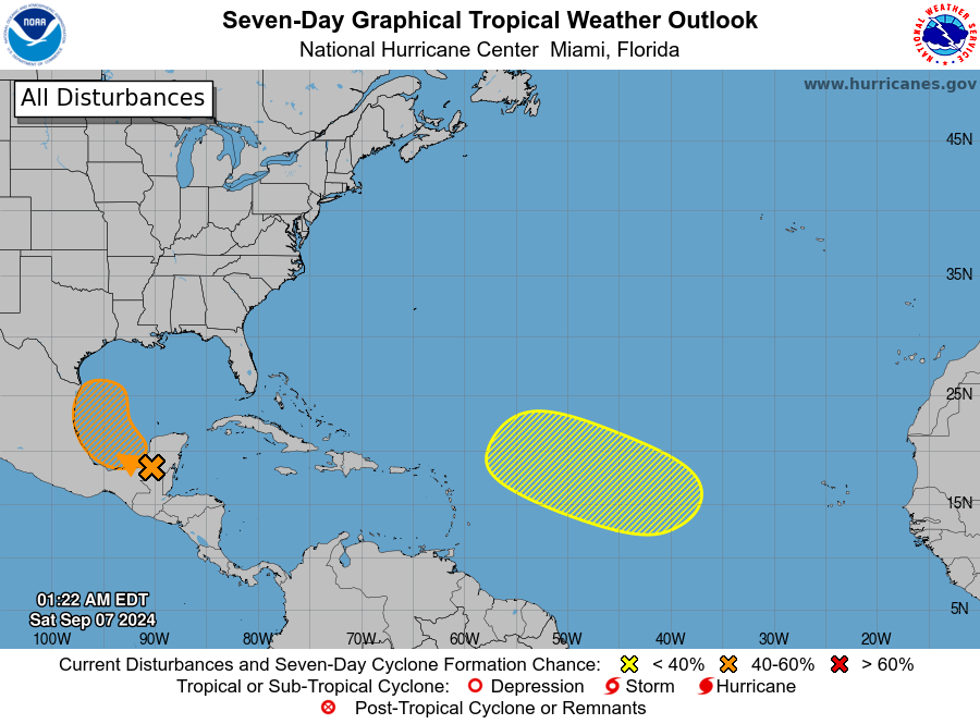 Aqui está uma olhada em muitas áreas tropicais monitoradas pelo Centro Nacional de Furacões.