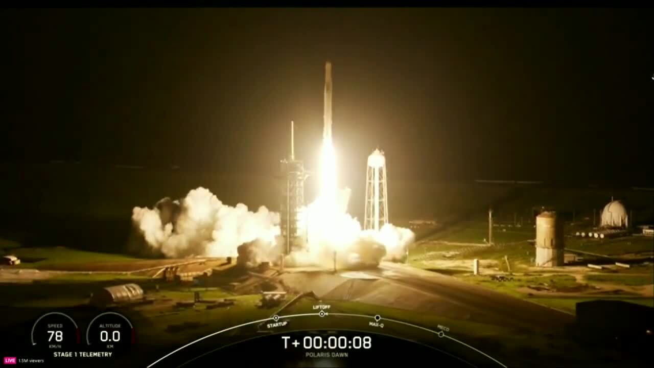Isaacman, junto com dois engenheiros da SpaceX e um ex-piloto de Thunderbirds da Força Aérea, decolou antes do amanhecer a bordo de um foguete SpaceX Falcon 9 da Flórida. A caminhada espacial está programada para quinta-feira, no meio do voo de cinco dias.