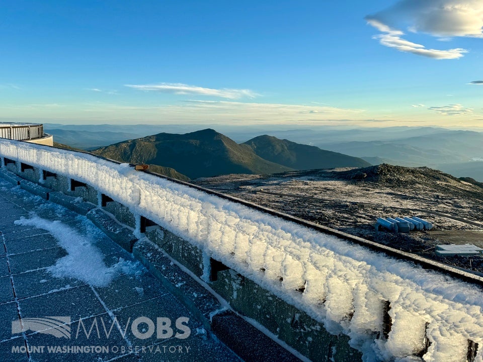 O Observatório do Monte Washington disse Na segunda-feira, foi registrada oficialmente a primeira queda de neve mensurável da temporada — 0,1” — resultado de quase 36 horas de temperaturas abaixo de zero no topo do cume.
