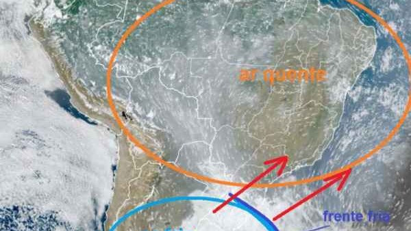 O Climatempo esclarece que, no efeito pré-frontal, o ar frio “pressiona” o ar quente, fazendo com que as temperaturas se elevem.