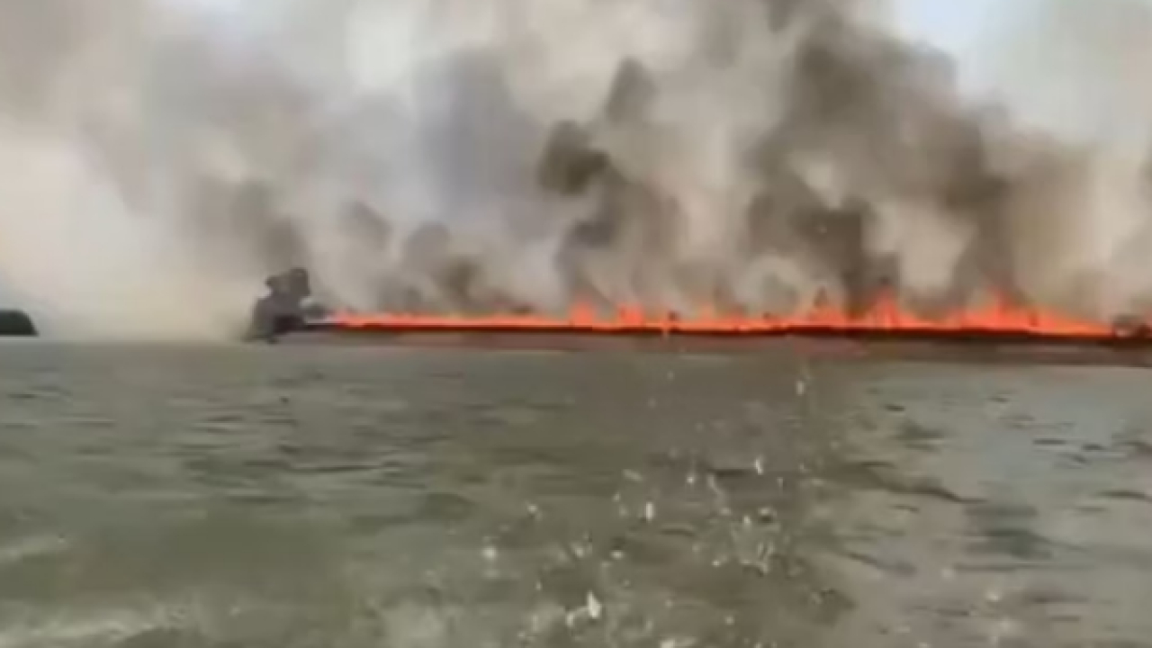 Um brigadista que estava passando de barco pelo Rio Xingu conseguiu registrar o paredão de fogo. Veja vídeo: