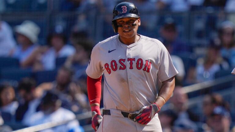 O Red Sox marcou quase imediatamente três corridas após a decisão dos Yankees de dar base intencional a Rafael Devers no sábado. Foto AP/Frank Franklin II