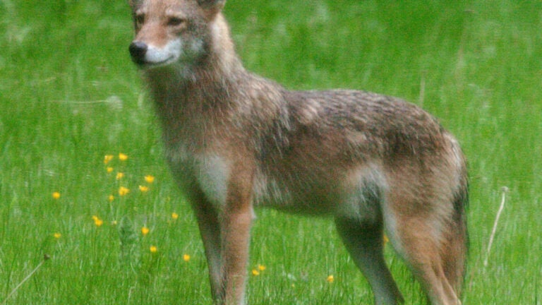 Um coiote em Bridgewater, Massachusetts. Coiotes são nativos de todas as partes de Massachusetts, exceto das ilhas, de acordo com autoridades estaduais. David L. Ryan