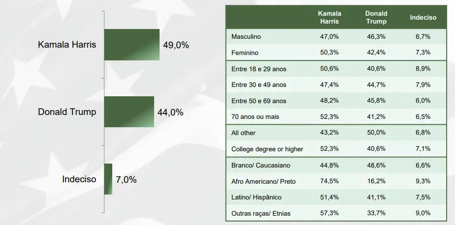 Kamala versus Trump: como e onde foi feita a pesquisa