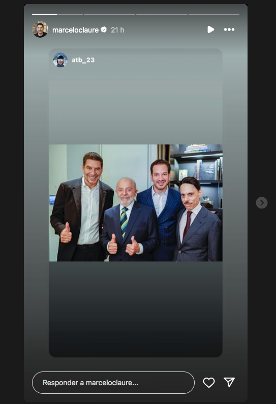No Instagram, Claure publicou uma foto com Lula e disse que foi uma honra recebê-lo em sua casa.