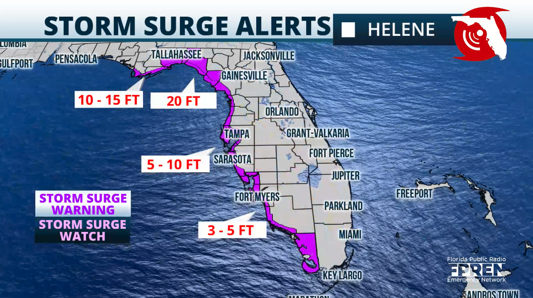 O Hurricane Center disse que Helene é um dos maiores furacões das últimas duas décadas. A tempestade, a chuva e os ventos se estenderão para longe do centro e bem fora do cone previsto, particularmente no lado leste em direção a Jacksonville.