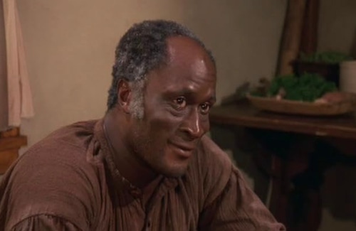 John Amos como o adulto Kunta Kinte em “Roots”. Ele foi indicado ao Emmy por sua atuação.abc