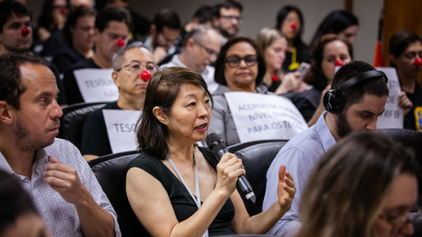 Na ocasião, eles usaram nariz de palhaço e seguraram cartazes com as frases “o governo não sabe o tesouro que tem” e “acordo se cumpre: nível superior para os técnicos”, entre outras. O protesto é devido a falta de acordo de ajuste salarial.