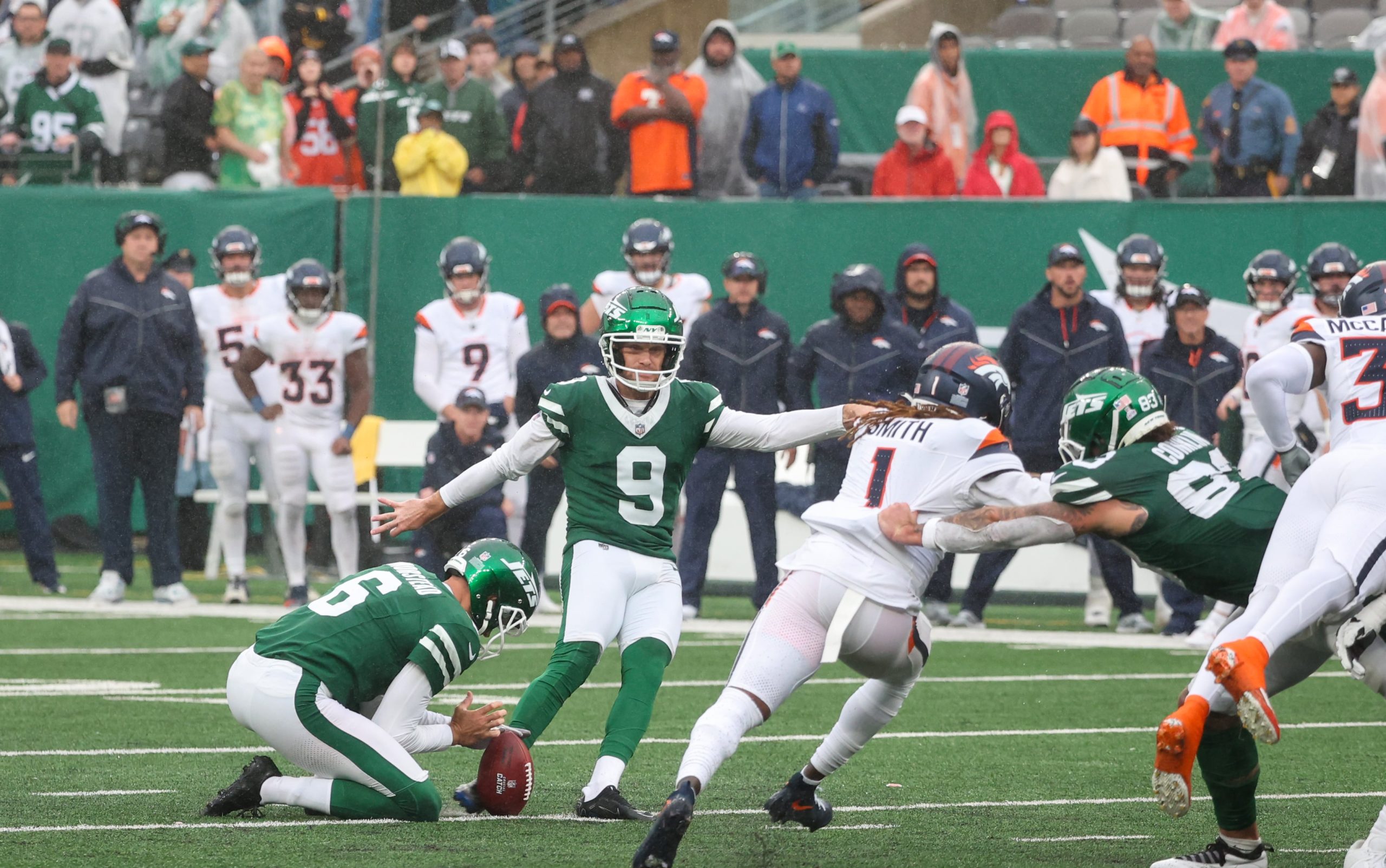 Enquanto se preparava para o confronto de domingo contra os Vikings em Londres, o place kicker dos Jets fez uma tentativa de 44 jardas no hash direito. Então, as líderes de torcida de Minnesota entraram em campo e cercaram Zuerlein enquanto eles iniciavam sua rotina pré-jogo.