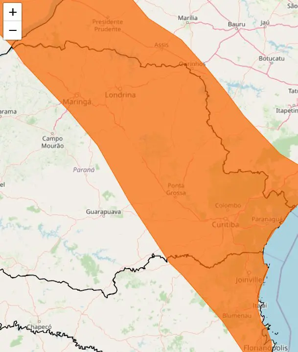 O Inmet classificou as tempestades previstas como “laranja”, um aviso meteorológico que qualifica as chuvas como perigosas, e alertou para os riscos associados às condições climáticas adversas.