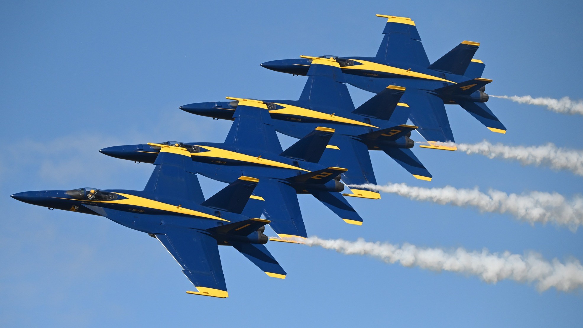 Os Blue Angels começarão seu show às 14h30 em ambos os dias.
