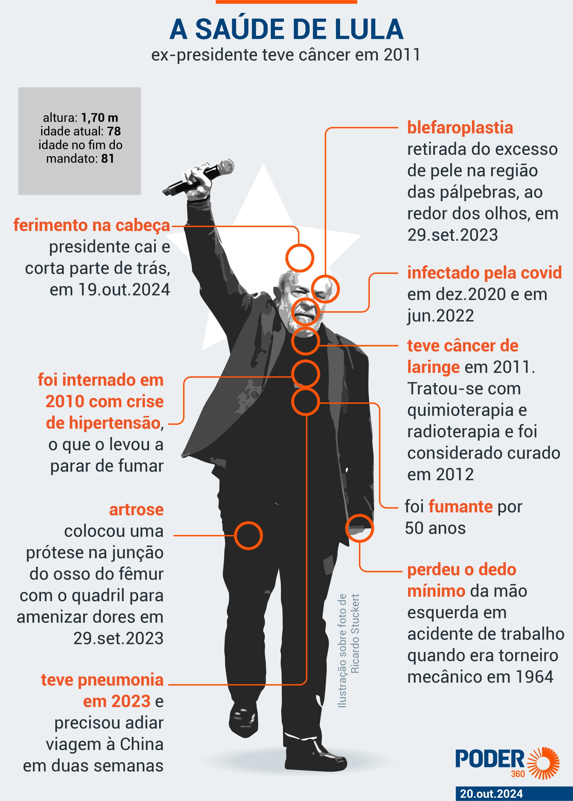 O médico do presidente Luiz Inácio Lula da Silva (PT), Roberto Kalil Filho, disse neste domingo (20.out.2024) que o petista teve um traumatismo craniano causado pela queda que teve no Palácio da Alvorada.